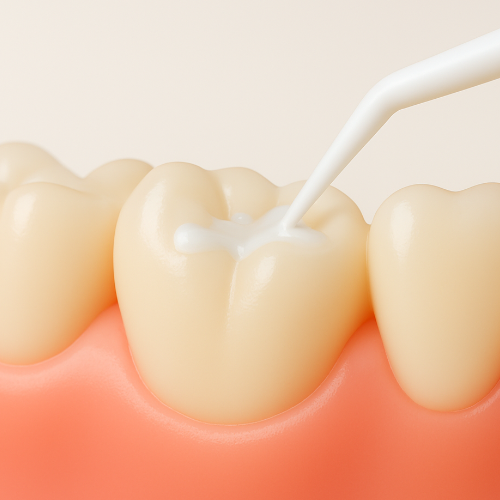 Pit and fissure sealants are placed on the biting surface of back teeth. A sealant acts as a barrier, protecting the enamel from bacterial plaque in cavity prone areas. Sealants should be placed as soon as the teeth erupt on children and teenagers. Some adults may benefit from sealants as well.