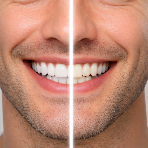 We use a light activated 36% carbamide peroxide solution with a blue and red LED light to enhance our in office whitening trays. This procedure only takes 30 minutes and can be done in conjunction with your cleaning. You will also be given a 22% syringe and take home tray for touch ups.